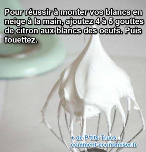Cette astuce est efficace, car le citron a le pouvoir d’aérer la texture des blancs d’œufs.