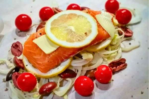 - 15. Papillote de saumon aux olives et tomates
